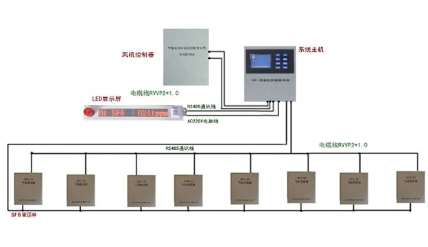 RSL-6000型氣體泄漏定量報(bào)警系統(tǒng)主要應(yīng)用在變電站內(nèi)35KV SF6開(kāi)關(guān)室及500KV、220KV、110KV GIS室,對(duì)SF6組合電器設(shè)備室環(huán)境中SF6氣體泄漏情況和空氣中含氧量進(jìn)行實(shí)時(shí)監(jiān)測(cè),并判斷是否報(bào)警及啟動(dòng)風(fēng)機(jī)。極大地提高了無(wú)人值守變電站運(yùn)行的安全性,特別是對(duì)日常巡視和維護(hù)人員的人身安全得到可靠的保障。